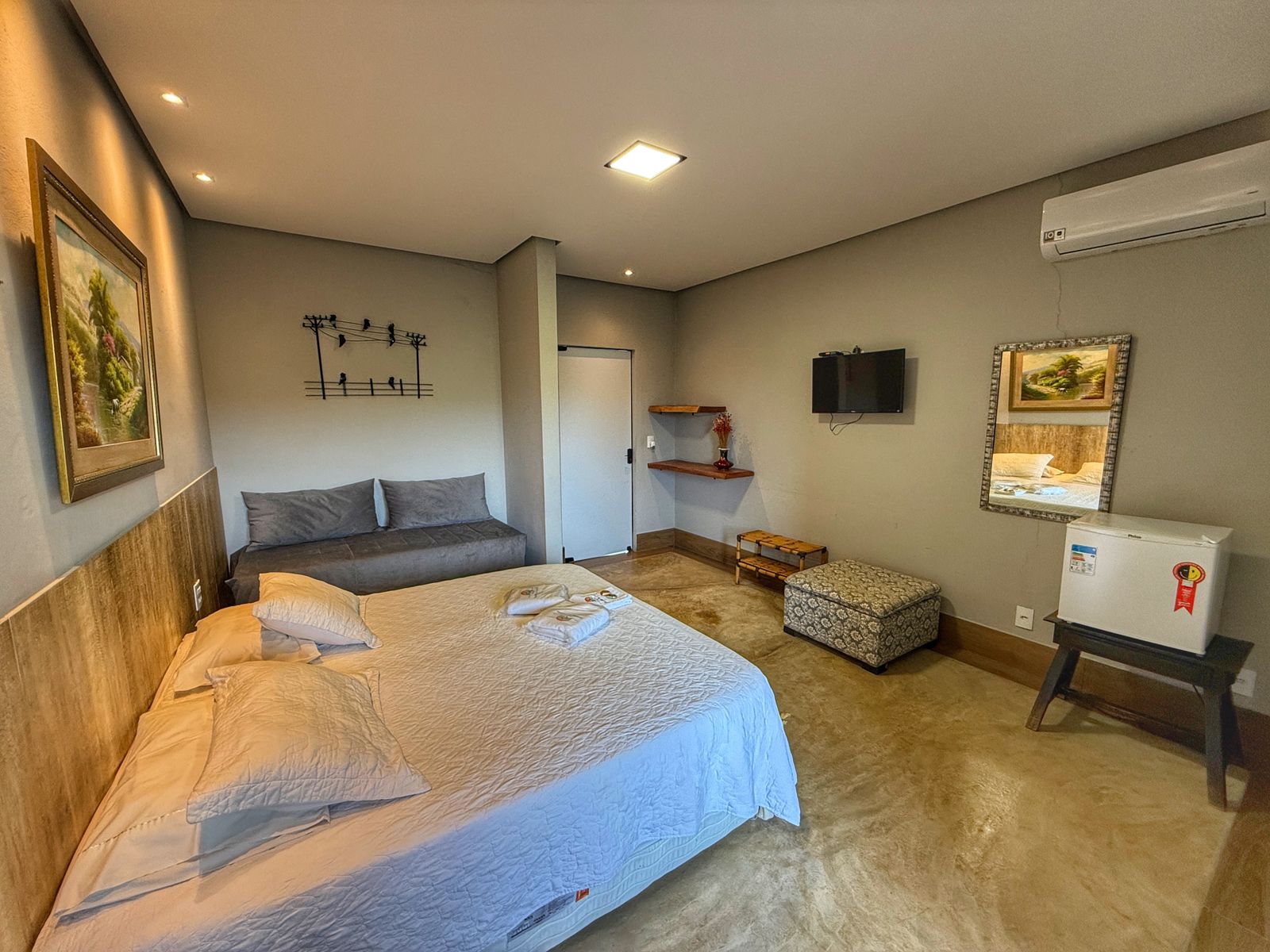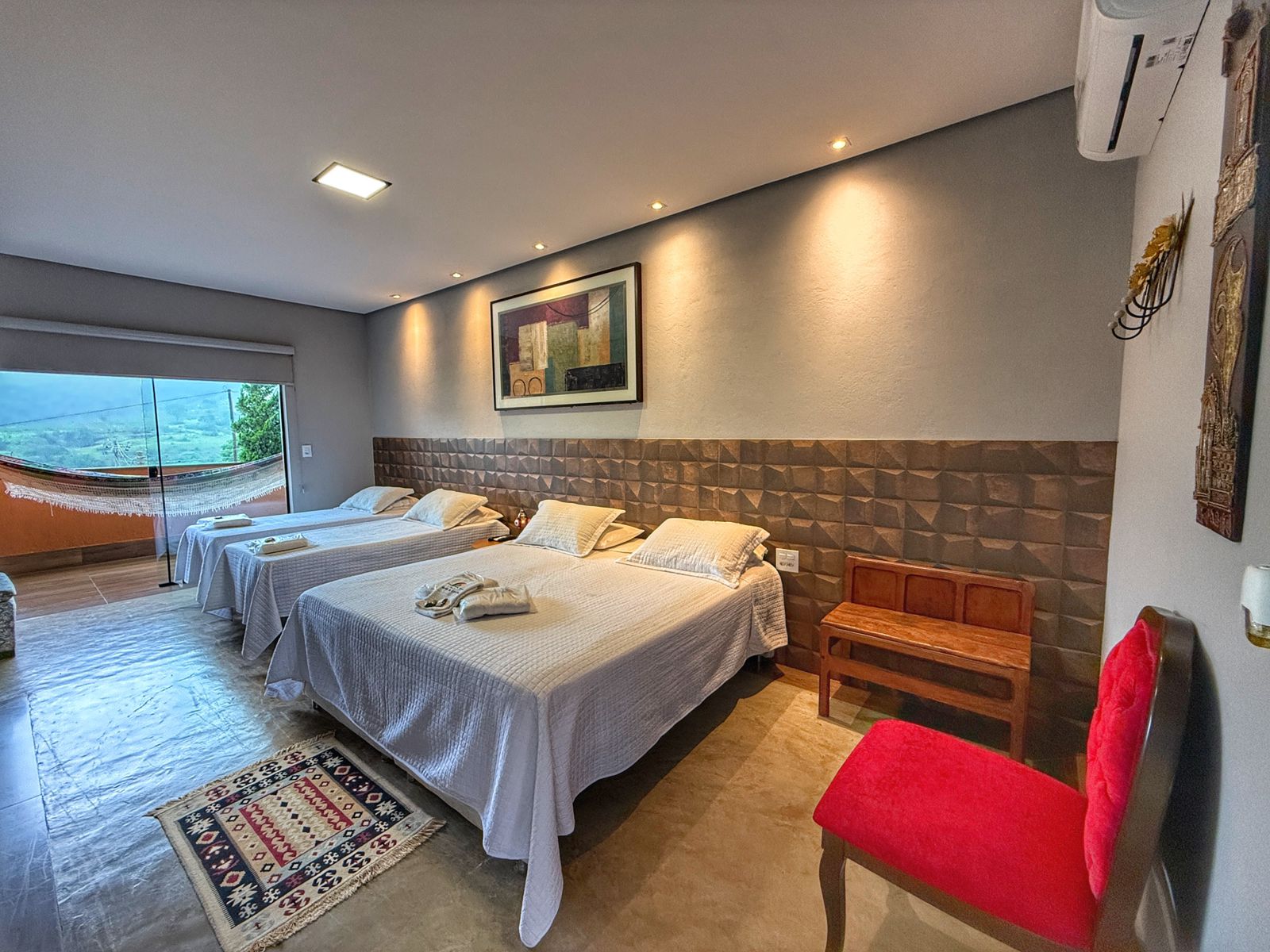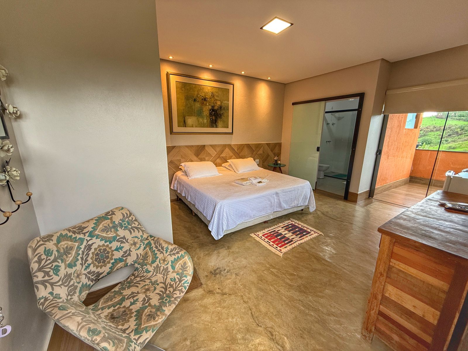 São 08 suítes, todas espaçosas com varanda, com vista para as montanhas da Canastra.